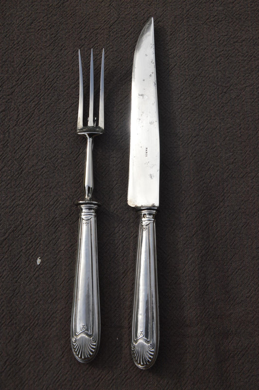 Carving Set French Solid SILVER Silver Handle Fork Carbon Steel Blade Antique Hallmarked Minerva 950 Silver Marked Paris Good Original Box