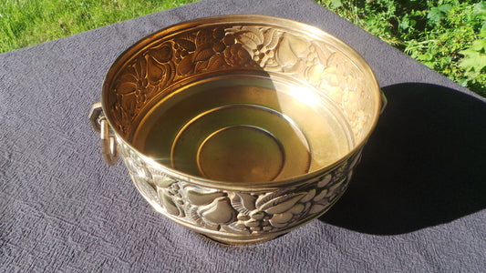 French Art Deco French Yellow Copper Flower Pot Cache Pot Planter Fruit Bowl Jardiniere Decorated Bowl Repaired Planter Cache Pot