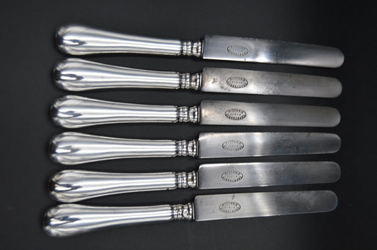 Ercuis Silver Plated 'Metaille Blanc' Set of 6 Knives Made by Ercuis of Paris 6 Six Super Knife Set Marked Ercuis Paris Some Minor Dents