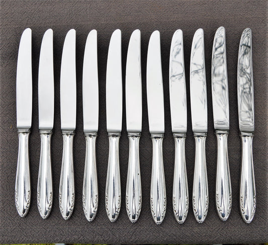 Voglux 11 Knives French Silver Plated Marked VL Voglux Steel Blades Vintage France Cutlery Flatware French Artisan Paris 3