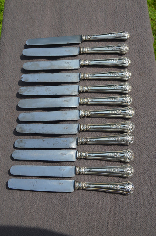 12 Knives Boxed French Silver Plated Unmarked Antique Made in France Cutlery Flatware Knife French Tableware Superb Condition Boxed Ecusson