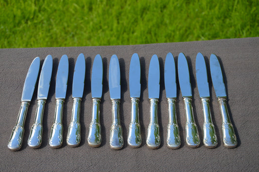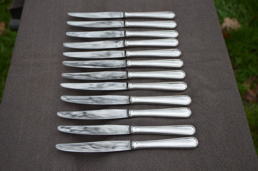 Ercuis 'Metaille Blanc' Silver Plated Set of 12 Lucheon Side Plate Knives Made by Ercuis 12 Twelve Super Knife Set Marked Ercuis Paris