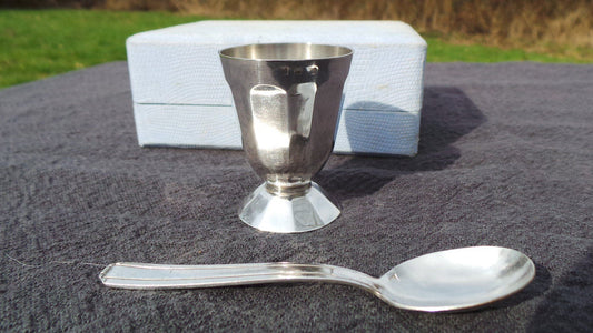 Coffret Argent Assiette Coquetier et Cuillère Français Vintage Poinçonné Cuillère Petit Déjeuner Ensemble Enfant Petit Déjeuner Coffret Cadeau Baptême Anniversaire