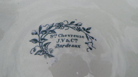 Bordeaux Oyster Plate with Feet French Faience China Porcelain Ceramic Transfer Printed Dish 1845-1895 Blue and White J Vieillard Full Mark