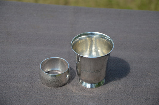 Bécher et Rond de Serviette Ravinet D Enfert Plaqué Argent 'Métaille Blanc' Entièrement Marqué Dessin Planifié Gravé ANTONIN