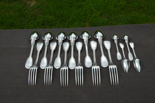 Antique Ruolz Six Cuillères Fourchettes et Quatre Cuillères à Café Filet Français Argent Plaqué Riolz Marqué 1866-1868 Couverts de Luxe Couverts