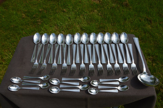 Ercuis 12 Forks and 12 Spoons Boxed Entremets/Dessert French Silver Plated Marked Ercuis Cutlery Flatware Good Antique Condition Boxed Worn