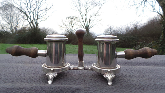 Paire d'assiettes en argent, salière et poivrière, assiette en argent et support en bois, ensemble de service Français Salières en argent Pepperette