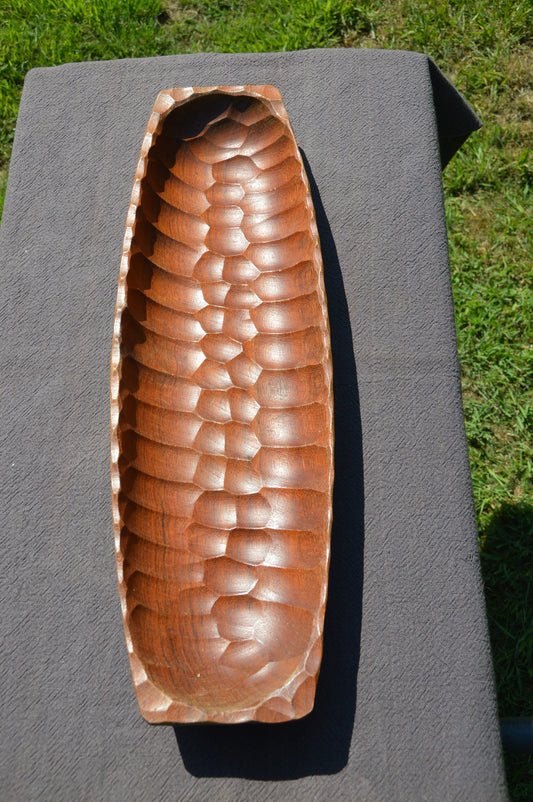 Français vintage sculpté Style Forêt Noire Baguette Pain Planche de service en bois massif Belle patine sculptée à la main Assiette de service Plateau en bois