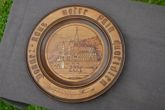 Planche à pain française vintage en bois massif de Lourdes, fabriquée à la main, devise traditionnelle, donnez-nous notre pain quotidien Donnez Nous Notre Pain Quotidien