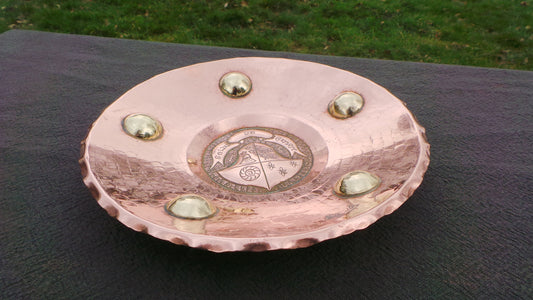 Plat en cuivre Antique Basque Français Assiette en cuivre massif avec pastilles en laiton totalement faite à la main Plat en cuivre Repousse Vide Poche