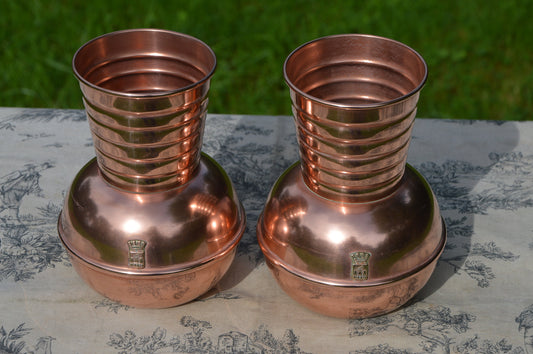 Paire de vases en cuivre Décor en cuivre Porte-ustensiles Vase à fleurs GAOR Villedieu France Pot en cuivre Lourdes Badges Home Decor Français Copper Design