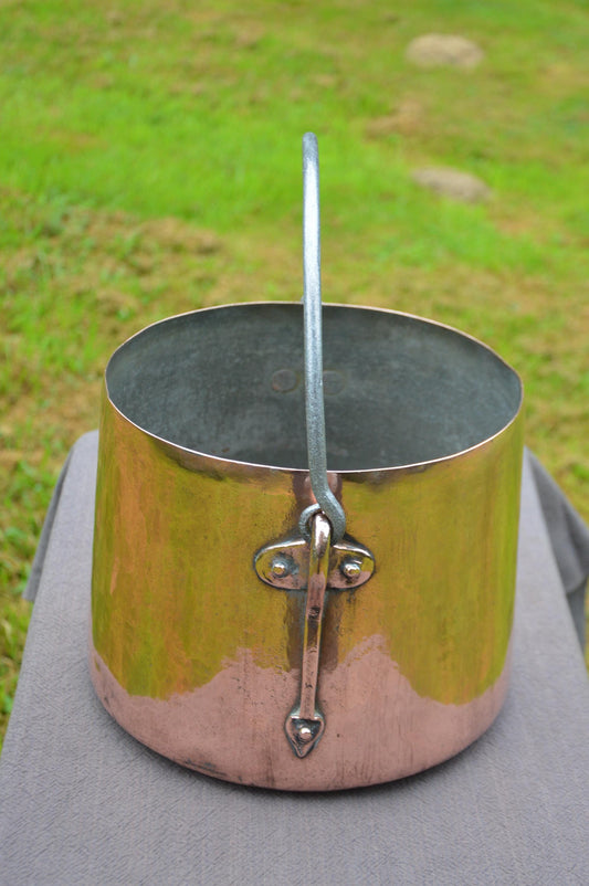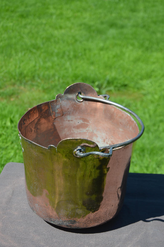 Antique French Solid Copper Water Bucket Copper Bucket Forged Iron Handle Totally Hand Made Fabulous Ancient Manufacture Not Water Tight