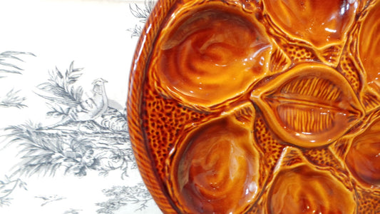 Assiette à huîtres St Clements Français Huître Huitre Moule Poisson Assiette Belle Brun vintage Français Assiette de Poisson - Super Condition