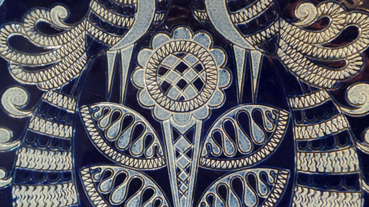 Stoneware Platter German Pottery Big Plate Fully Marked Marzi and Remy of Westerwald Made Germany Robust Stoneware Blue Hand Made