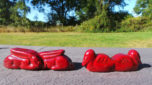 Vintage French Animal Knife Rests Red Ceramic Vallauris Style Art Deco Pottery Set of 8 Ducks Geese Rabbit Dog Fish Pelican