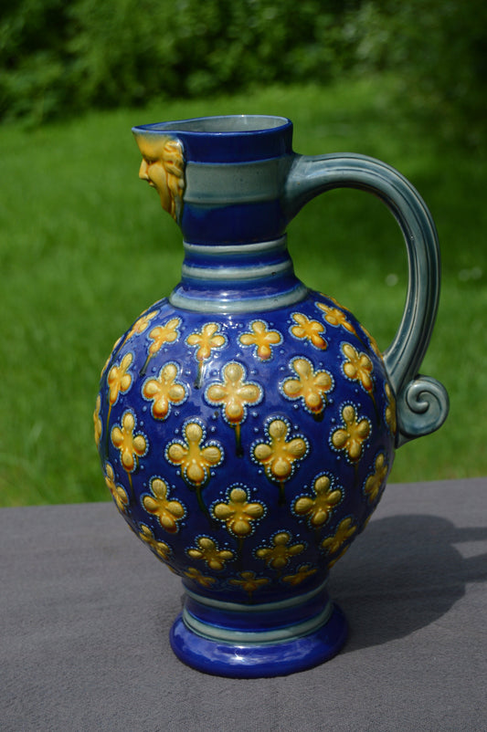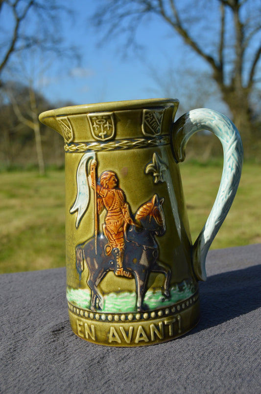 French Majolica Pitcher Joan of Arc Jeanne D'Arc Antique Five Lille French Majolica Marked Barbotine Authentic Majolica Jug Rare, Beautiful