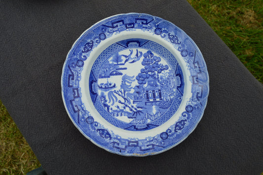 J Vieillard David Johnstone Two Plates Bordeaux French Faience China Porcelain Ceramic Transfer Printed Willow Pattern 1835-1844 Blue White