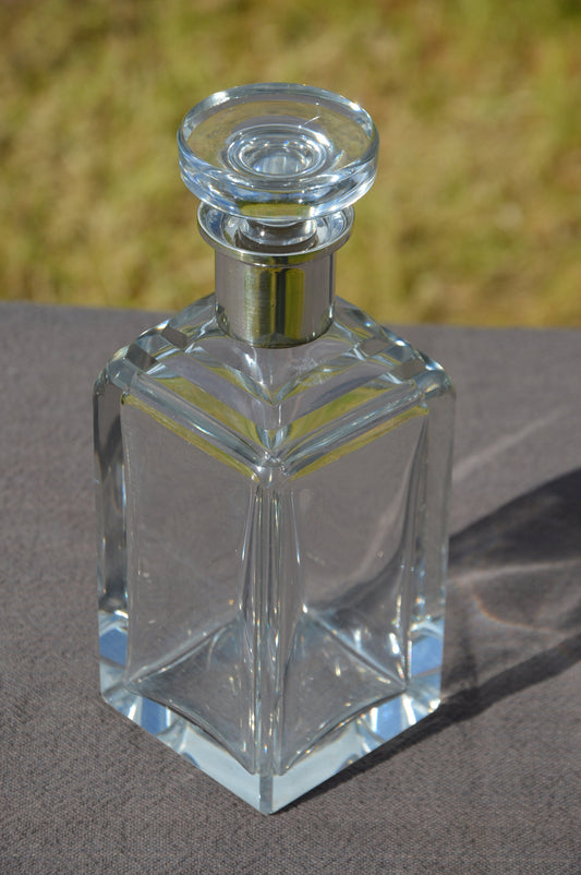 Français Carafe en verre Antique Collier en argent lourd Carafe à vin en verre Flacon Pichet Récipient Pichet Bon état Fabriqué en France Timbre en argent 800