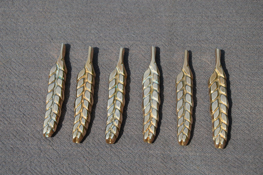 Six repose-couteaux en bronze massif marqué DP Excellent état épi de blé style classique robuste repose-couteaux en fonte lourde