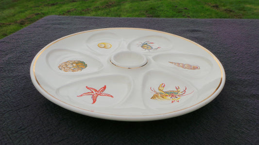 Assiette à huîtres Longchamps Scollop Huitre Moule Poisson Assiette vintage Français Super Condition Assiette de fruits de mer Assiette de coquillages Assiette d’huîtres