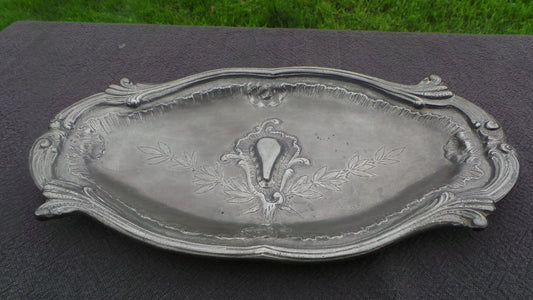 Plaque en étain de la fin du 19e siècle décorée entièrement marquée Repousée Plaque décorative en étain lourd Design 16e siècle