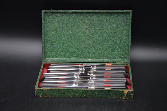 Ercuis 12 Forks and 12 Spoons Boxed Entremets/Dessert French Silver Plated Marked Ercuis Cutlery Flatware Good Antique Condition Boxed Worn