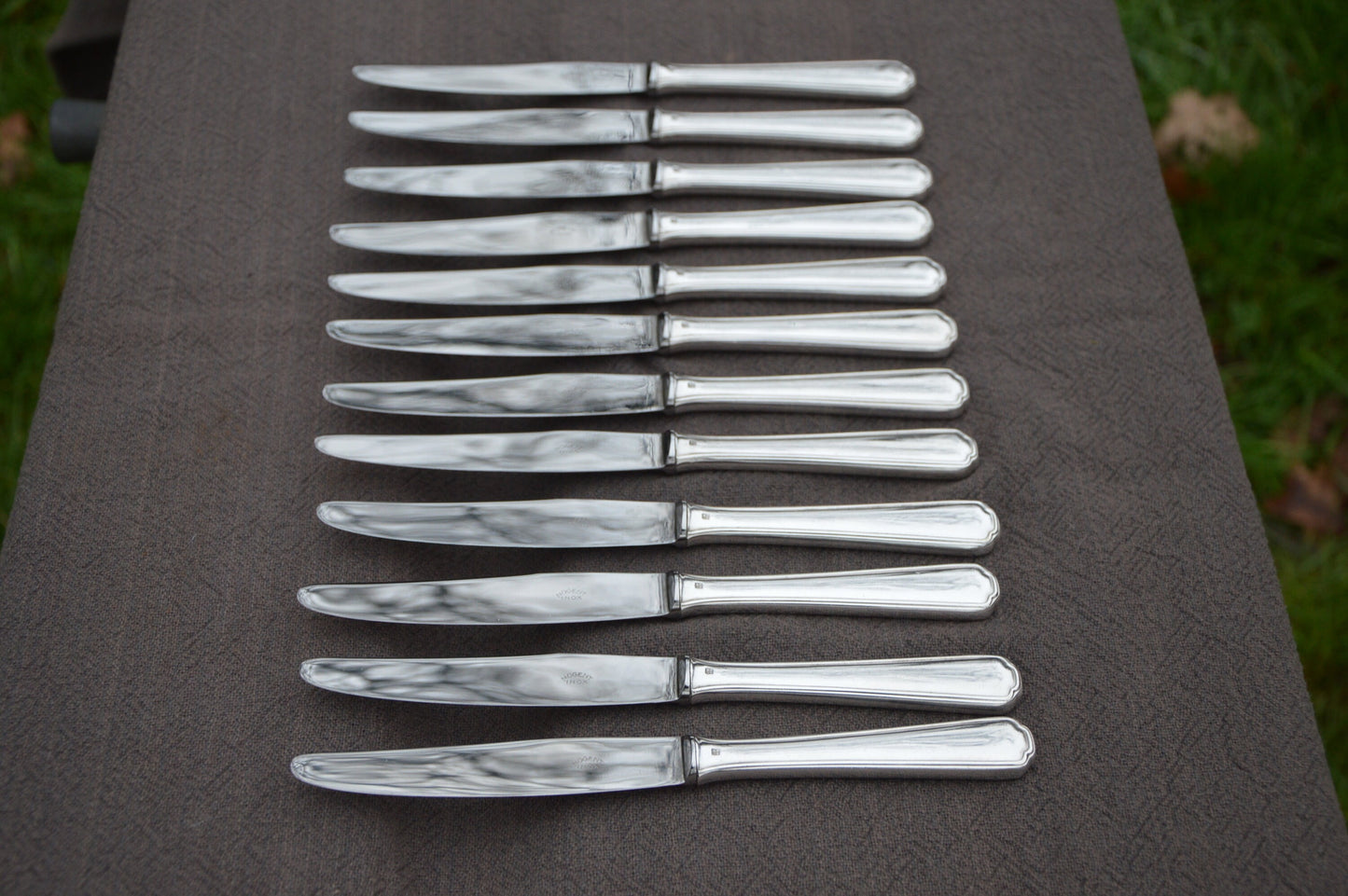 Ercuis Silver Plated 'Metaille Blanc' Set of 12 Knives Real Luxury Made by Ercuis of Paris 12 Twelve Super Knife Set Marked Ercuis Paris