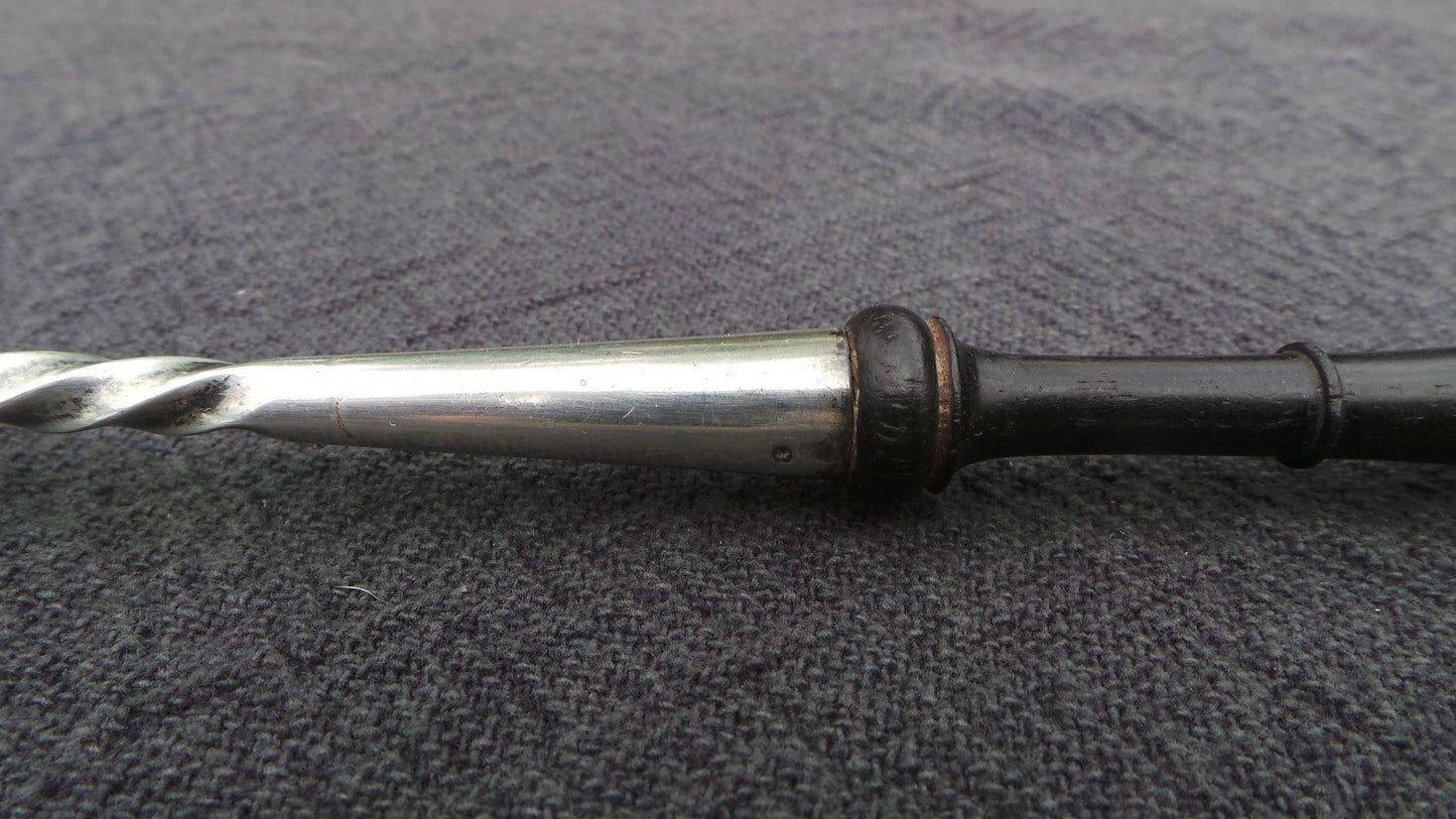 This is a collectors item and in super condition. Small sauce ladle in excellent antique condition suitable for use today. It has a metaille blanc bowl and shaft and a hard wood handle, very typical for its type.