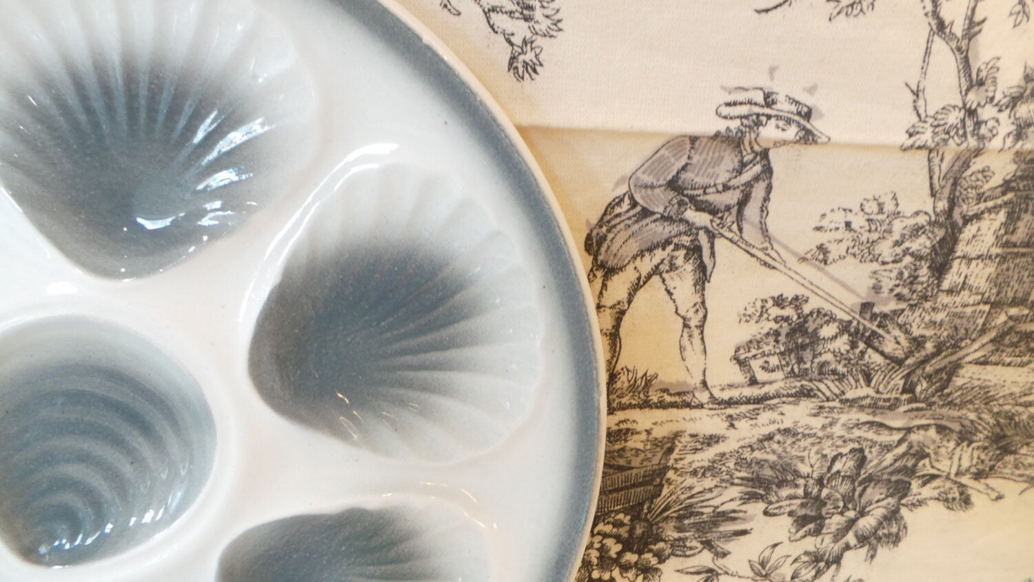Oyster Plate Huitre Mussel Fish Plate Orchies Light Grey and White Vintage French Super Condition Seafood Plate Shellfish Plate Oyster Plate